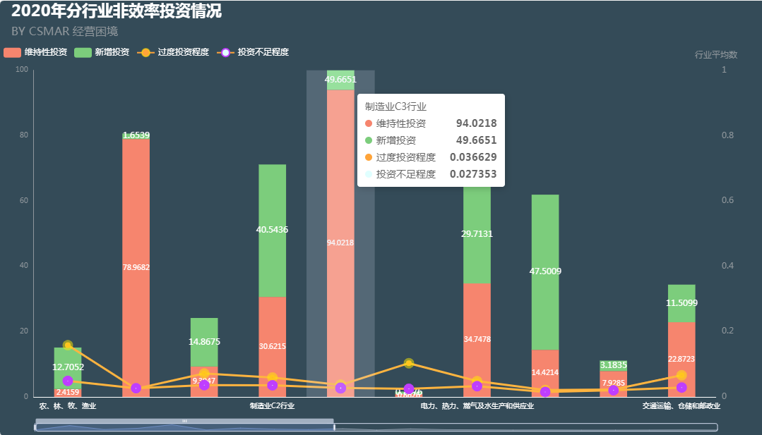 ͼ3Ч¹ûչʾÁËÆ¾Ö¤2012ÄêÖ¤¼à»áÐÐÒµ·ÖÀࣨÆäÖÐÖÆÔìÒµ¡°C¡±×ÖÍ·´úÂëÈ¡2룬£¬£¬£¬£¬£¬ÆäËûÐÐҵȡ1룬£¬£¬£¬£¬£¬ÌÞ³ý½ðÈÚÐÐÒµ£¬£¬£¬£¬£¬£¬Êý¾Ý´¦Öóͷ£ºó¹²»®·ÖΪ21¸öÐÐÒµ£©ºó£¬£¬£¬£¬£¬£¬ÉÏÊй«Ë¾ÔÚ2020ÄêµÄÐÐÒµÕûÌå·ÇЧÂÊͶ×ÊÇéÐΣ¬£¬£¬£¬£¬£¬°üÀ¨µÄÖ÷ÒªÖ¸±êÓÐά³ÖÐÔͶ×Ê¡¢ÐÂÔöͶ×Ê¡¢Ì«¹ýͶ×Êˮƽ¡¢Í¶×Êȱ·¦¡£¡£¡£¡£¡£¡£´Ó±íÖпÉÒÔ¿´³öÀ´£¬£¬£¬£¬£¬£¬Ò»·½Ã棬£¬£¬£¬£¬£¬¿ÉÄÜÊÜÒßÇéµÄÓ°Ï죬£¬£¬£¬£¬£¬62%µÄÐÐÒµ¾ùÒÔά³ÖÐÔͶ×ÊΪÖ÷£¬£¬£¬£¬£¬£¬×ÜͶ×ʶî×î´óµÄÊÇÖÆÔìÒµC3ÐÐÒµ£¨°üÀ¨£º2012°æÖ¤¼à»áÐÐÒµ·ÖÀàC30-C39ÐÐÒµ£©×ÜͶ×ʶî´ï143.68ÒÚÔª£¬£¬£¬£¬£¬£¬ÆäÖÐά³ÖÐÔͶ×Ê94.02ÒÚ£¬£¬£¬£¬£¬£¬ÐÂÔöͶ×Ê49.66ÒÚ£»£»£»£»£»£»£»ÁíÒ»·½Ã棬£¬£¬£¬£¬£¬ÓëÈËÃñÉúÑÄÇ×½üÏà¹ØµÄÅ©ÁÖÄÁÓæÒµ¡¢ÖÆÔìÒµ¡¢·¿µØ¹¤Òµ¡¢½ÌÓýÒµµÈÒ²·ºÆð³öÐÂÔöͶ×ʶî´óÓÚά³ÖÐÔͶ×ʵÄÎÈÖÐÇó½øµÄÇéÐΡ£¡£¡£¡£¡£¡£µ«ÎÒÃÇ´ÓʹÓÃÐÐҵƽ¾ùÊýÅÌËãµÃ³öµÄ·ÇͶ×ÊЧÂÊÀ´¿´£¬£¬£¬£¬£¬£¬ÕûÌåÉÏ´ó¶¼ÐÐÒµÕվɱ£´æÌ«¹ýͶ×ʵÄÇéÐΡ£¡£¡£¡£¡£¡£